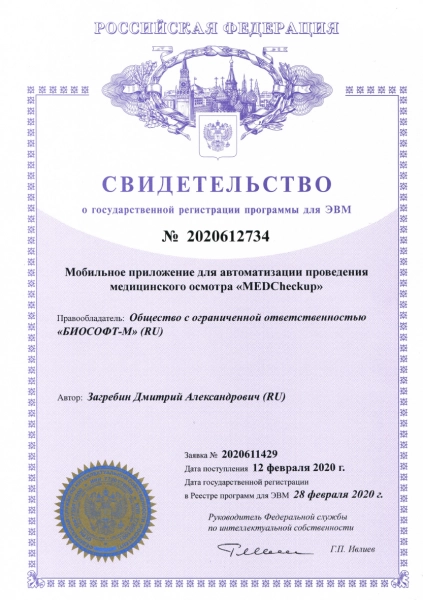 Полученные при создании "MEDCheckup" результаты интеллектуальной деятельности зарегистрированы Роспатентом