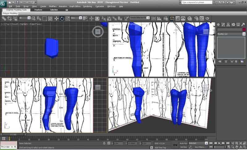 Повторяем вышеописанный процесс до достижения необходимого результата. Таким образом создадим ногу и половину таза для нашей модели.