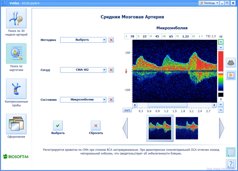 Vatlas (ultrasonography atlas) is a BIOSOFT-M company product developed in cooperation with vascular surgery specialists from 15 City Hospital Shnaider Y. E. and Tutova M. G. Valtlas is based on a set of the unique materials collected from brain arteries and peripheral parts of the circulatory system. Vatlas displays a set of hemodynamics records for both norms and various pathologies to the wide auditory.