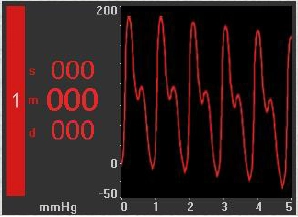 Принцип действия измерителей давления инвазивным методом «Ангиотон» основан на преобразовании значение давления крови в электрический сигнал с помощью датчика инвазивного давления. Полученный сигнал после фильтрации, усиления, оцифровки и обработки микропроцессором, используется для расчета значения давления. Одновременно с фильтрацией происходит автоматическое определение каналов, к которым подключены датчики. Измеритель давления инвазивным методом «Ангиотон» может работать в двух режимах отображения измеренного давления: графическом и цифровом. Полученные значения систолического, диастолического и среднего давления выводятся на экран дисплея в цифровом виде и графическом, в виде кривой давления определенного масштаба.