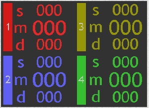 Экраны прибора в “цифровом” режиме работы при различном количестве включённых каналов измерения представлены на рисунках.