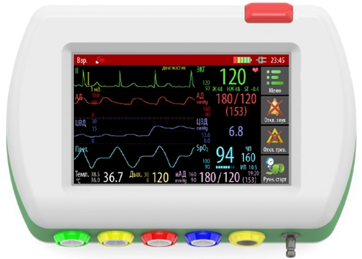 Портативный монитор пациента с автономным электропитанием и дистанционной передачей данных "Ангиотон-Универсал" предназначен для многоканального мониторинга жизненно-важных параметров пациента в ходе операций и реанимации, при транспортировке средствами скорой медицинской помощи и внутрибольничных перевозках.