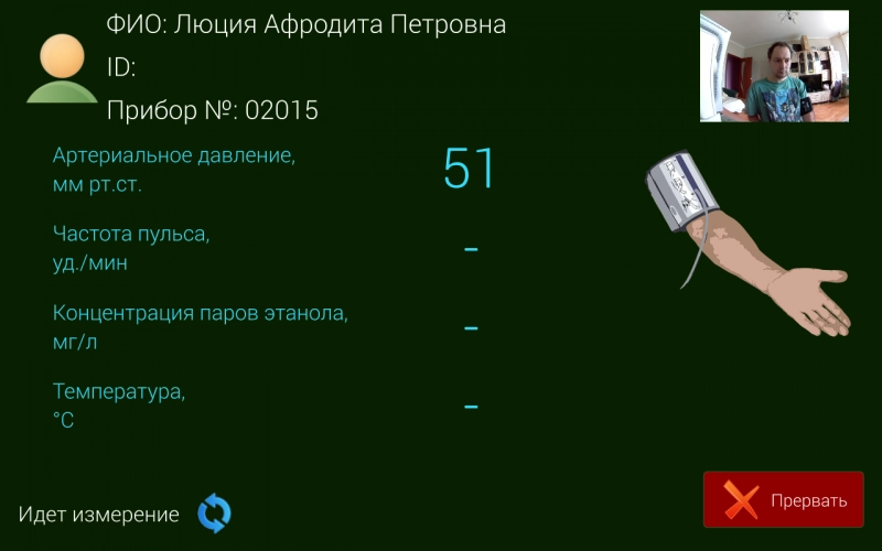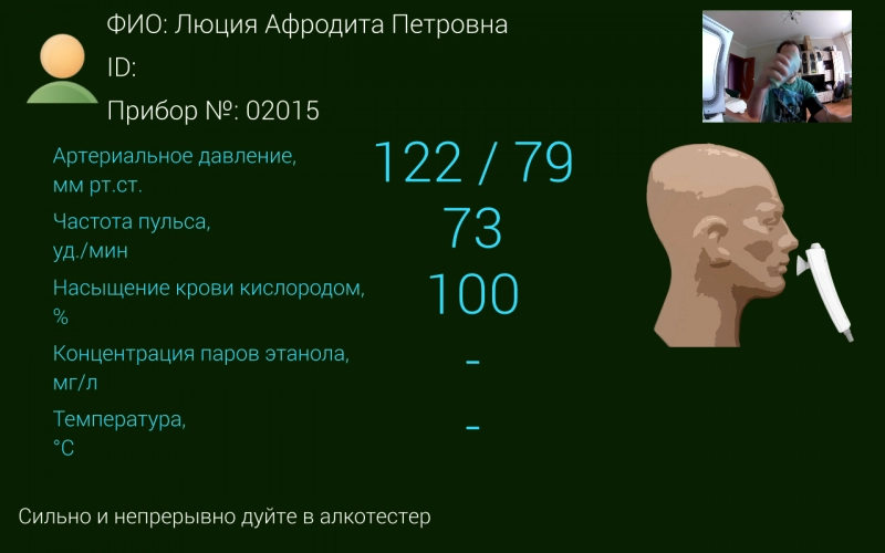При успешном завершении самодиагностики узлов Комплекса начинается медосмотр: