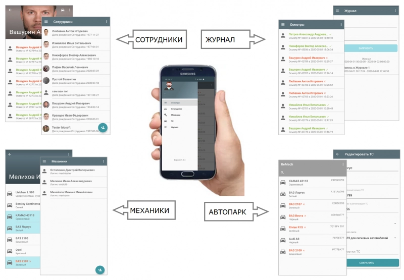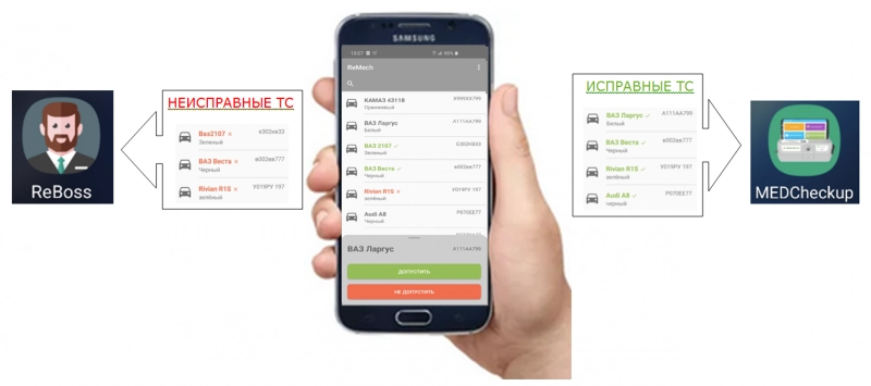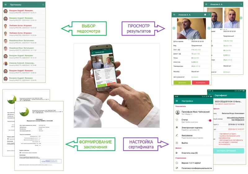 Весь функционал медосмотров реализуется ПО Комплекса и системой мобильных приложений участников медицинских осмотров: