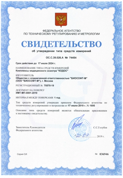 На Комплекс получено регистрационное удостоверение Росздравнадзор и он внесён в Реестр медицинских изделий.