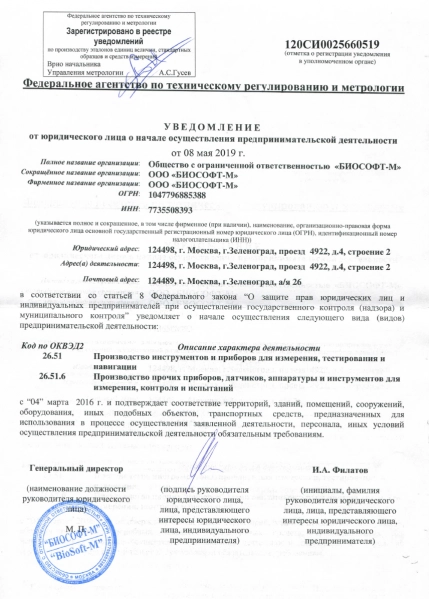 Уведомление о начале серийного производства "КОДОС" зарегистрировано в Реестре Росстандарта.