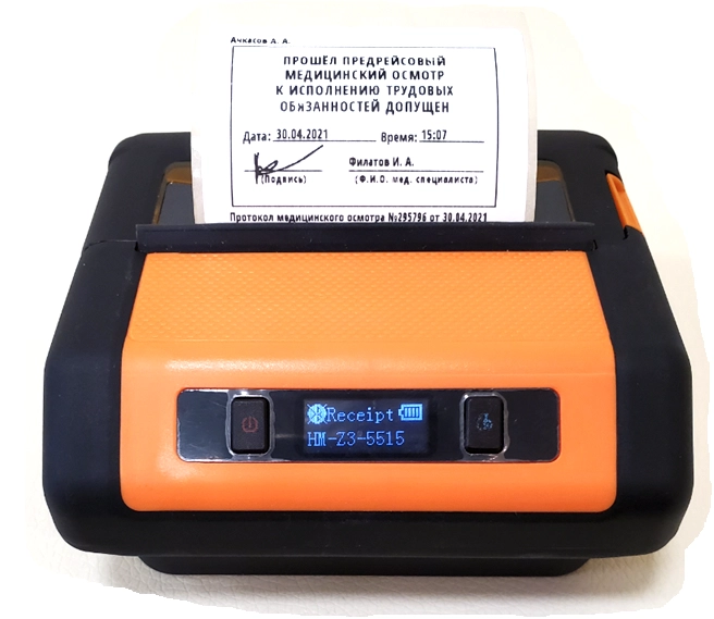 Дополнительно в комплект поставки может быть включён портативный принтер этикеток для распечатки результатов медицинского осмотра и одного из штампов: