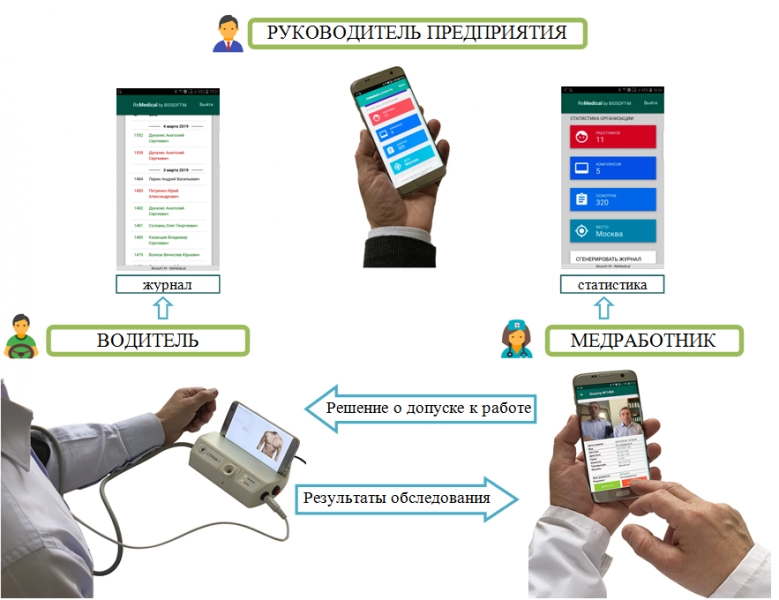 Компанией "БИОСОФТ-М" разработан и зарегистрирован (РЗН 2021/4299 от 13.05.2021 г.) портативный комплекс автоматизации медицинских осмотров "СТРАЖ" с системой синхронизированных мобильных приложений водителя, медработника, механика и руководителя предприятия для выполнения предрейсовых/ послерейсовых /предсменных /послесменных медицинских осмотров водителей в соответствии с приказом Минздрава России от 15.12.2014 N 835н "Об утверждении Порядка проведения предсменных, предрейсовых и послесменных, послерейсовых медицинских осмотров".
