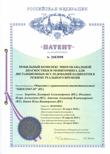 Программное обеспечение и патент на используемую в Комплексе технологию дистанционной передачи данных зарегистрированы в Роспатенте.